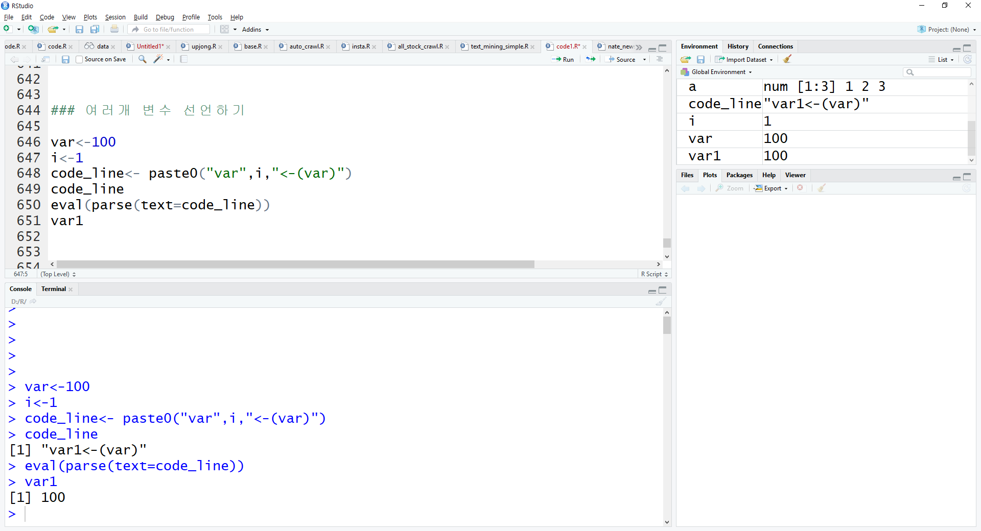 R에서 작업을 하다보면, 여러개의 변수를 선언해야하는 경우가 있습니다.