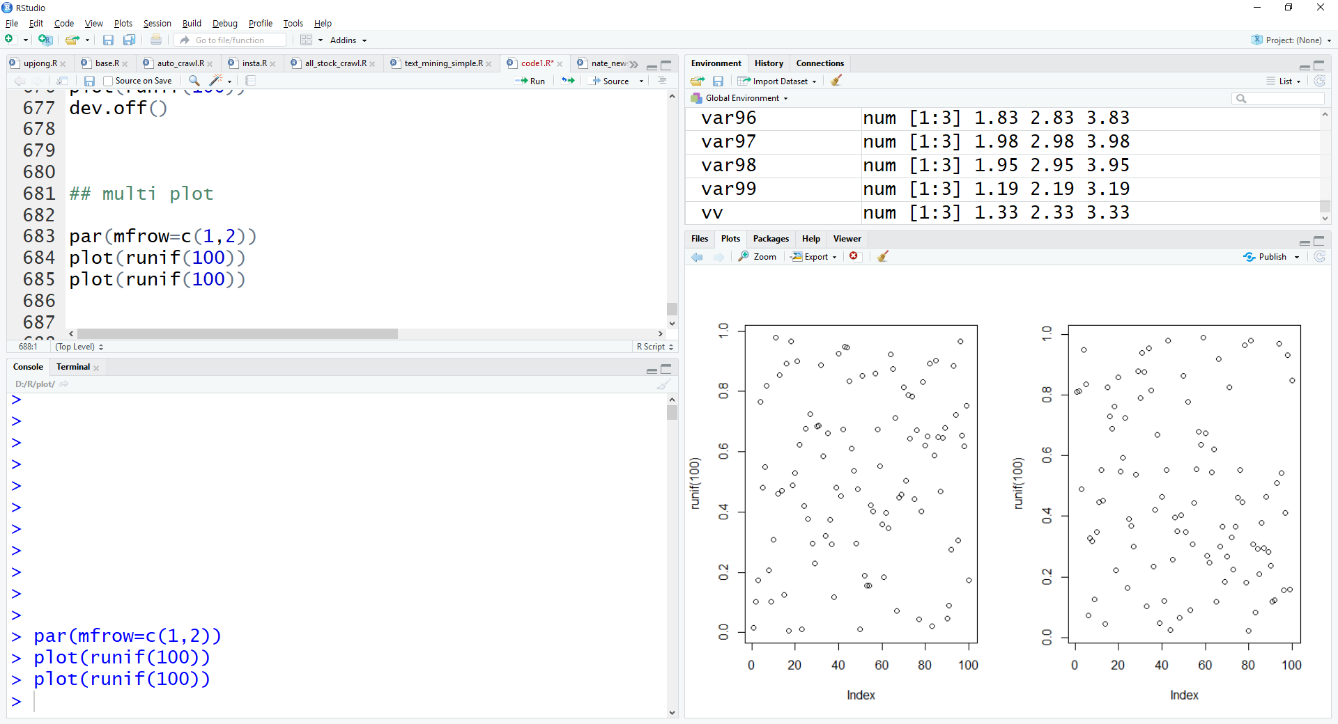여러개의 plot을 그려서 저장하는 방법은 위의 png함수를 응용해서 할 수 있습니다.