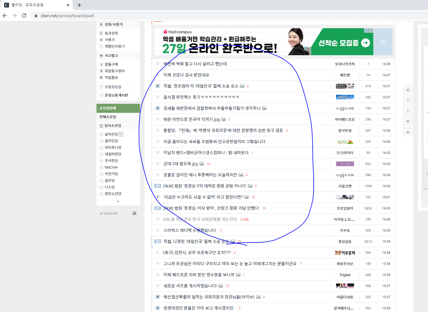 "https://www.clien.net/service/board/park" 로 되어 있습니다.