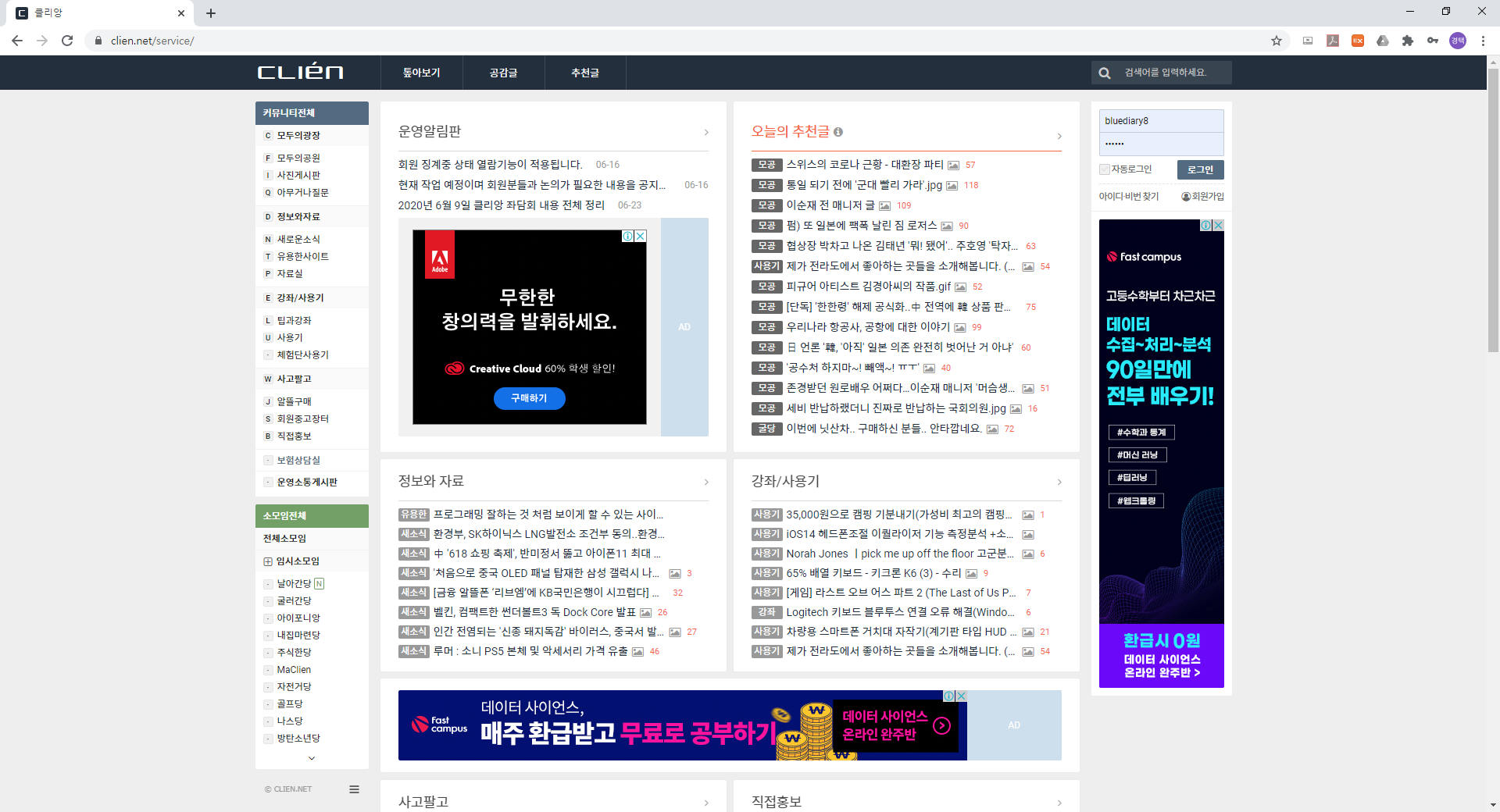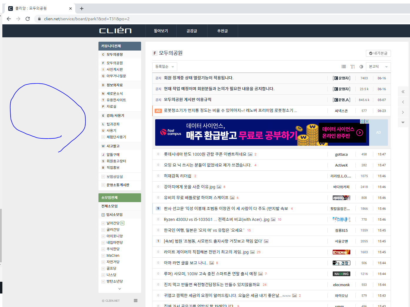 우선 아래의 주소로 들어가 클리앙이라는 커뮤니티에 접속을 해보죠