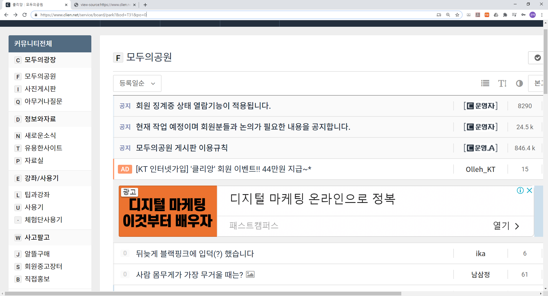 더불어, 클라앙 게시글의 위의 1~4번째 글은 공지와 광고이기 때문에 이는 제외하고 가져오도록 하겠습니다.
