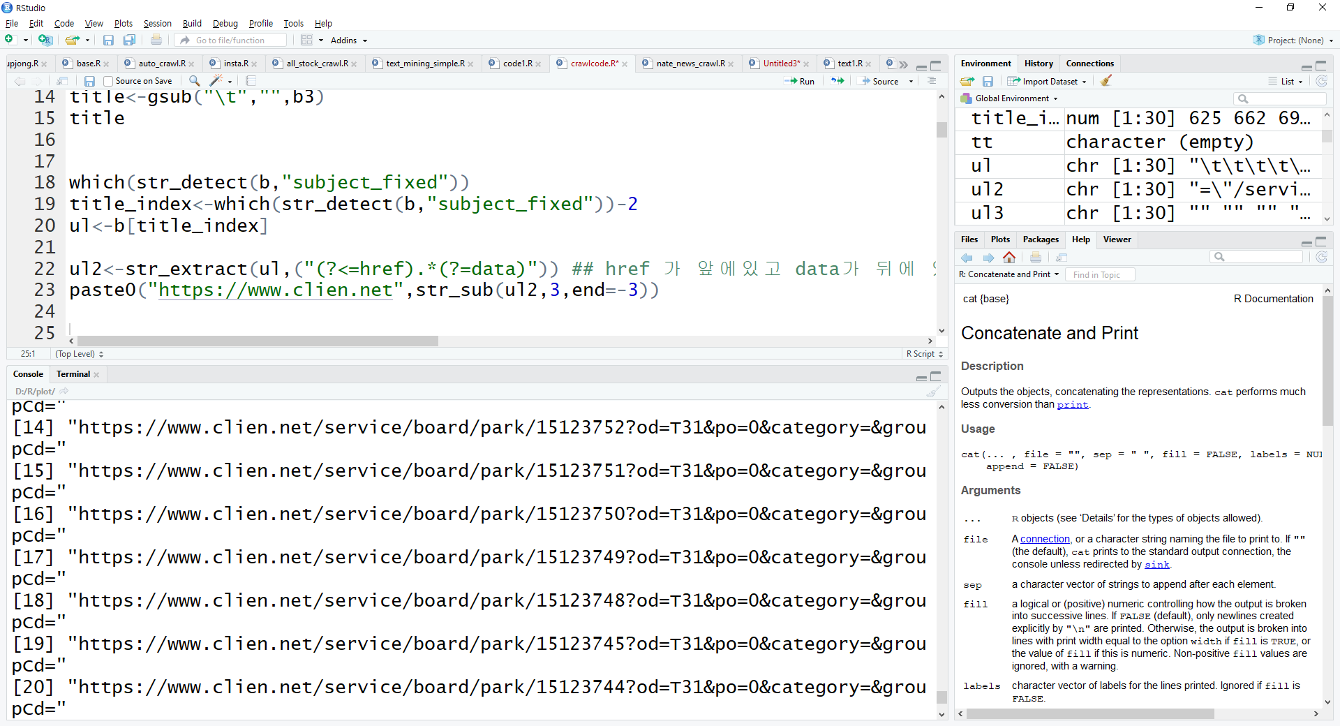 url_list<-paste0("https://www.clien.net",str_sub(ul2,3,end=-3)) ##url