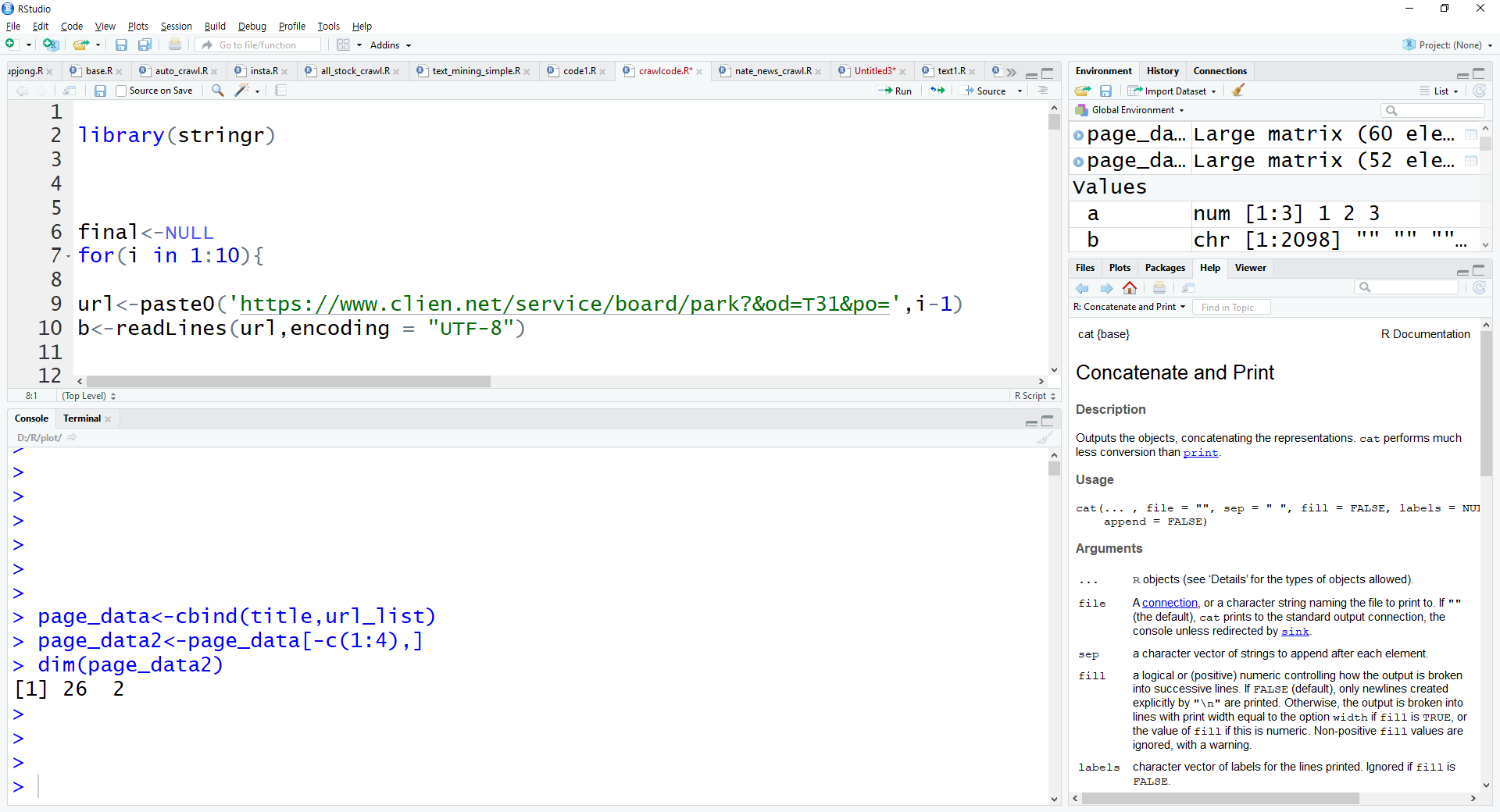 setwd("D:\\R\\crawl")