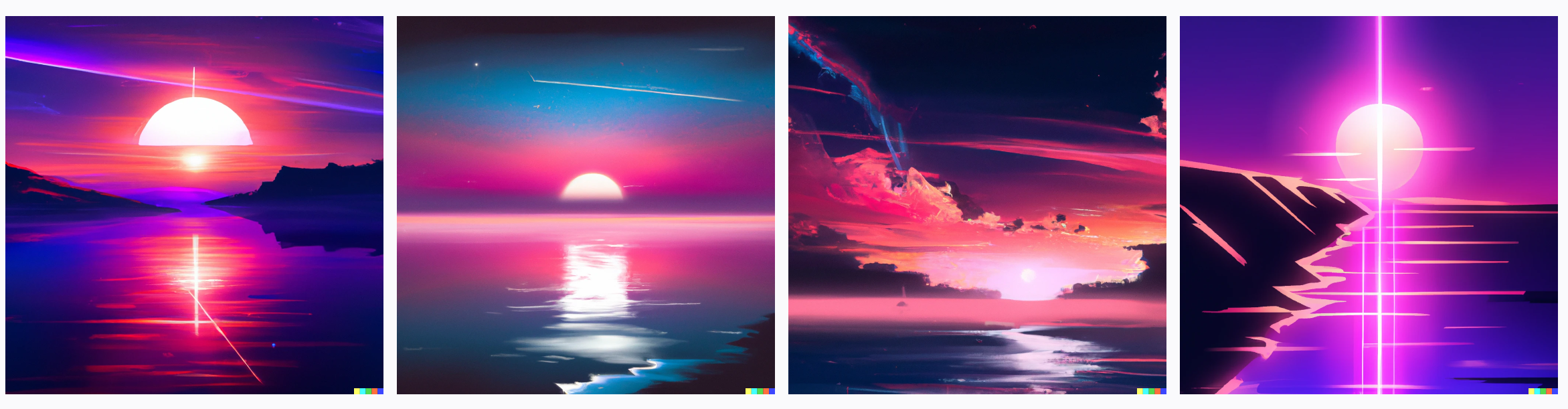 'A synthwave style sunset above the reflecting water of the sea, digital art'