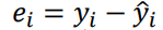 실제 값에서 추정 값을 뺀값을 우리는 잔차 (Residual)이라고 하고, 아래와 같이 ei 또는 ri로 표현하는데 i는 observation number입니다. 즉 i번째 데이터의 잔차를 의미하는 것이죠. 결국에, 이 잔차가 최소가 되도록 직선을 긋는것이 목표가 됩니다.