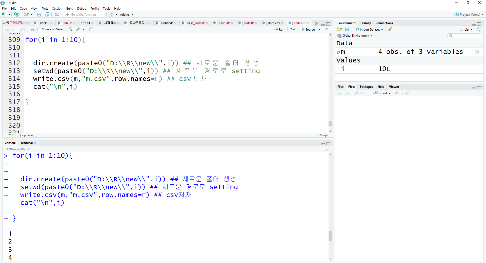 setwd(paste0("D:\\R\\new\\",i)) ## 새로운 경로로 setting