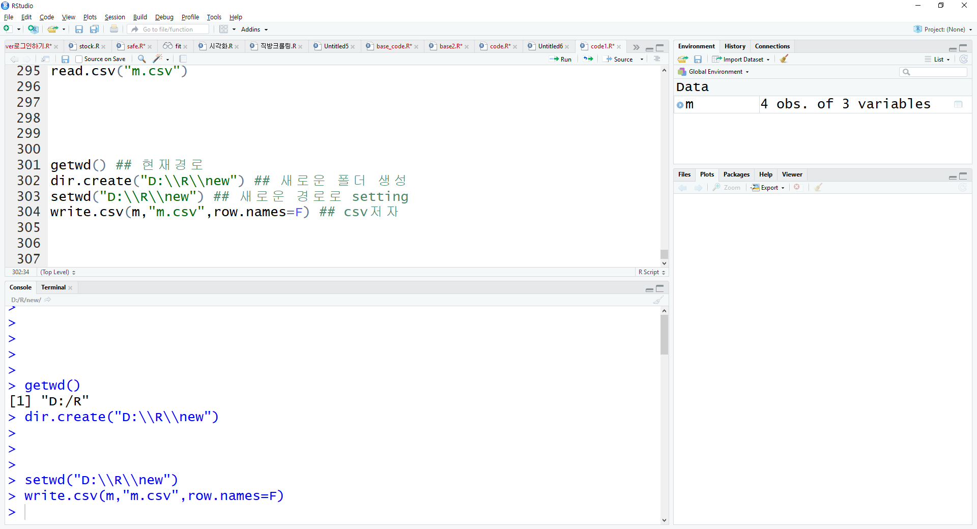 write.csv(m,"m.csv",row.names=F) ## csv저자