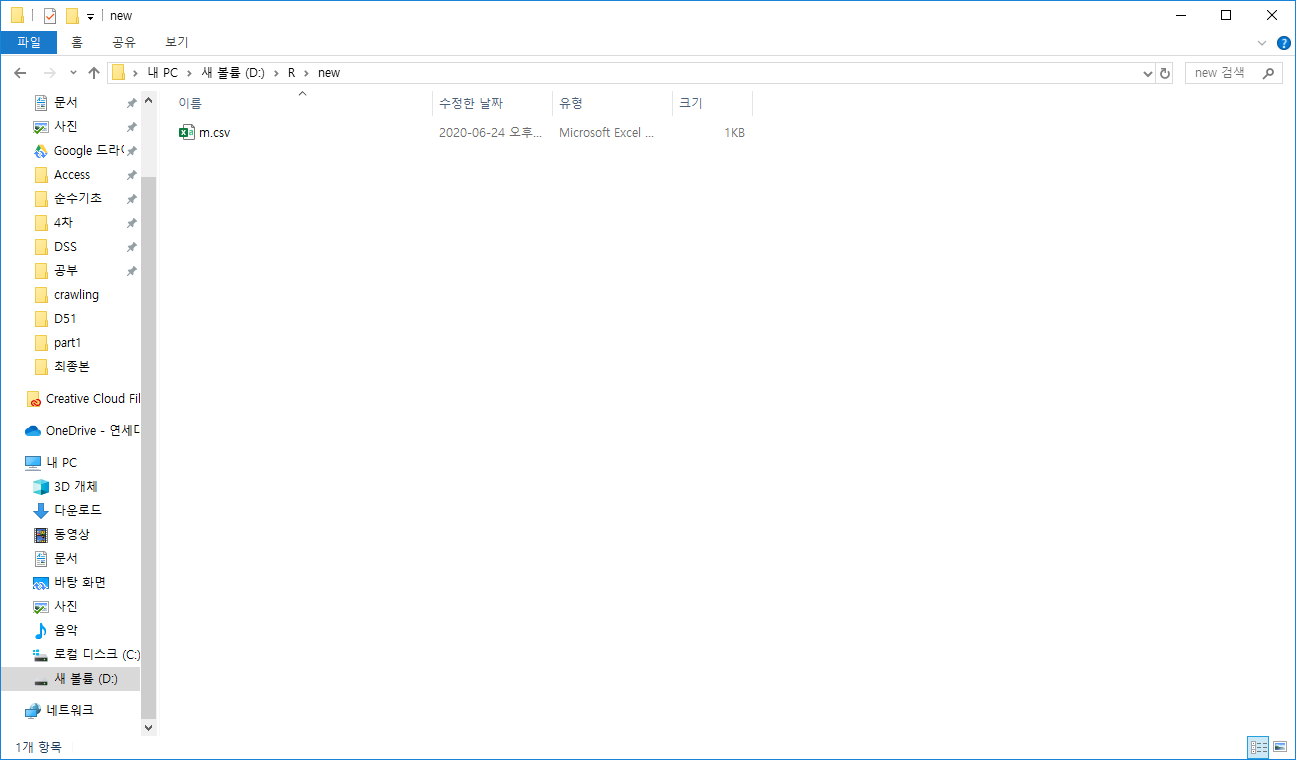아래 화면을 보시면 new폴더안에 csv파일이 잘 저장 된것을 볼 수 있습니다.