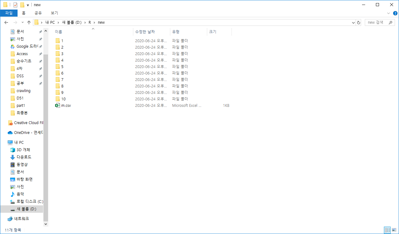 new폴더 안에 1~10폴더가 생성된 것을 보실 수 있습니다.