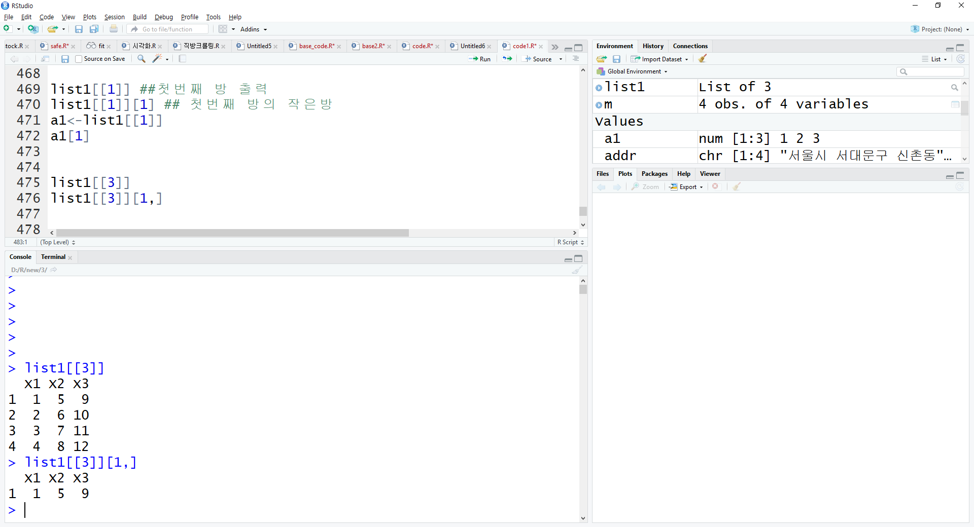 list1[[3]] ## 세번째 방 출력