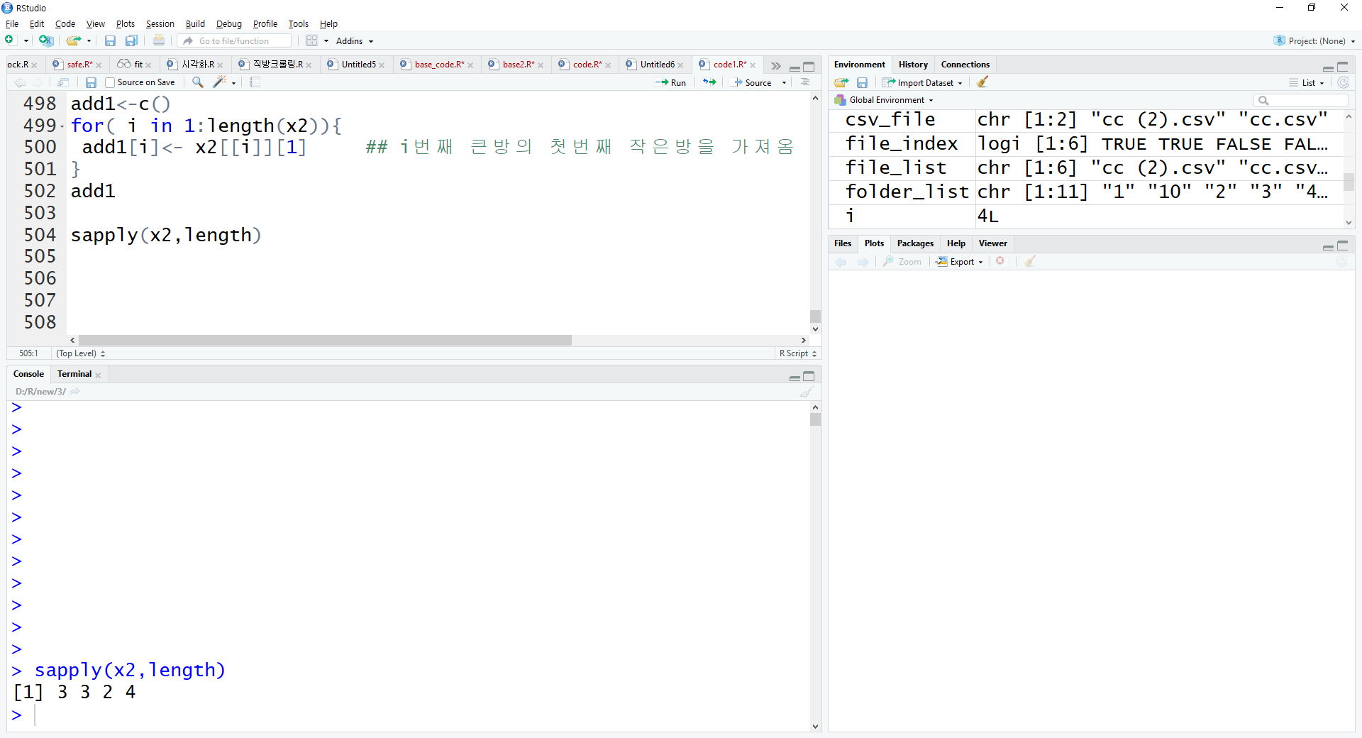 add1[i]<- x2[[i]][1] ## i번째 큰방의 첫번째 작은방을 가져옴